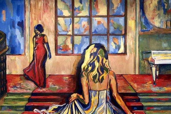 The author belongs to the artists who are characterized by an essential colourism. Colour, which she often kneads in a sculptural way, has a very central meaning for her. Her canvases exhibit a bright and distinctive colour palette dominated by ultramarine blue. She enjoys working in the traditional manner of painting – oil on canvas – from real life models, still life or plein air. Her paintings are artistic captures of memories and reflections from personal experiences, or events and social phenomena in society, which she reflects on and